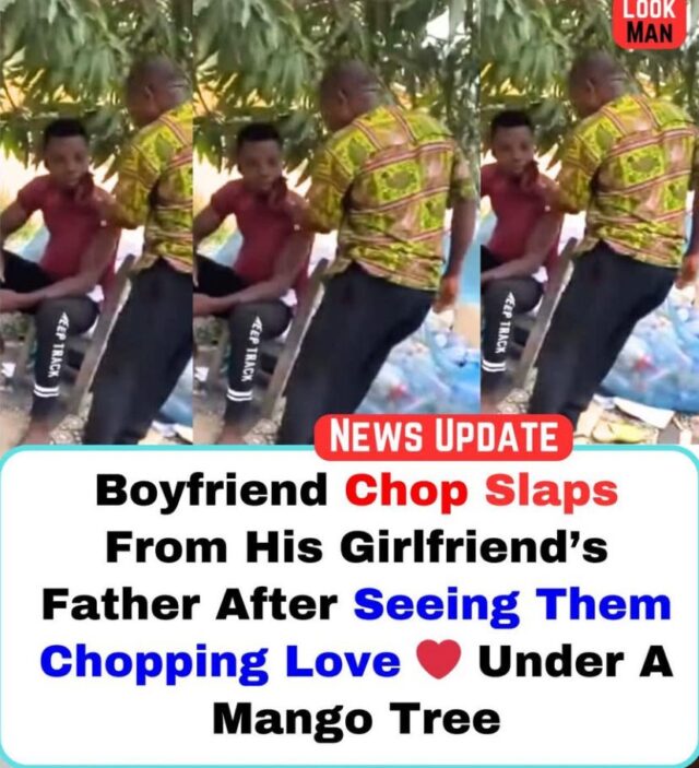 A quiet afternoon in a normally peaceful community turned dramatic when a young man received a series of stinging slaps from his girlfriendâs father after the two lovers were allegedly caught engaging in an intimate romantic moment beneath a mango tree. The incident, which has since gone viral and sparked laughter, debate, and criticism online, highlights the ongoing tension between youthful romance, cultural expectations, and parental authority.